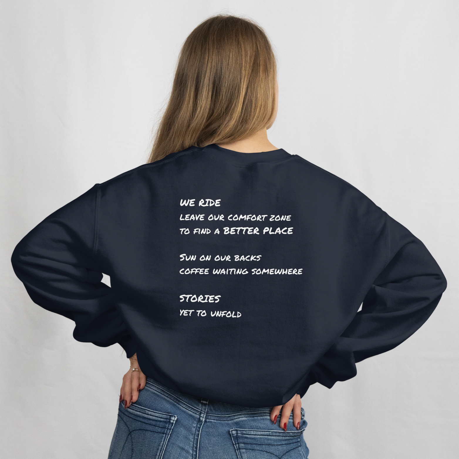 Dieses Sweatshirt ist unser "Manifest" - mit dem We Ride Gedicht einzigartig, schlicht und doch auffällig unverkennbar.